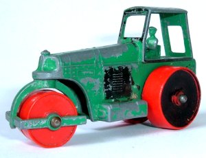 Matchbox Aveling Barford earth Mover in yellow. 1:70ish scale made in 60's, good condition - no box | Matchbox Aveling Barford Road Roller in green. 1:70ish scale made in 60's, fair condition - no box |