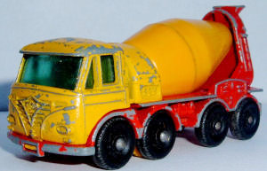 Matchbox Foden Mixer in orange 1:80ish scale made in the 60's, poor mint condition - no box | Matchbox Foden Mixer in Yellow/red. 1:70ish scale made in the 60's, good mint condition - no box | Matchbox Foden Mixer in Yellow/red. 1:70ish scale made in the 60's, near mint condition - no box |