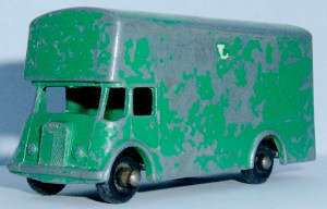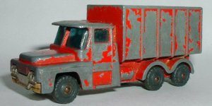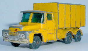 Husky GUY Warrior truck in red . 1:100ish scale made in the 60's, fair condition - no box | Husky GUY Warrior truck in yellow . 1:100ish scale made in the 60's, fair condition - no box | Matchbox GUY removal truck in green . 1:100ish scale made in the 50's, poor condition - no box |