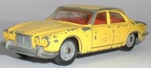 Jaguar XJ6 in yellow. 1:65ish scale made in the 60's, excellent