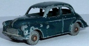 Morris Minor in green. 1:80ish scale made in the 50's, excellent