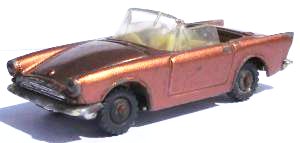 Husky Sunbeam Alpine in bronze. 1:70ish scale made in the 60's, excellent condition - no box | Tictac Sunbeam Alpine in blue. 1:60ish scale made in 2009 mint condition with box | Unknown Sunbeam Alpine |