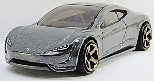 Hotwheels Tesla Roadster in red. (2019 with spaceman) | Hotwheels Tesla Roadster in grey (2024) | Hotwheels Tesla 3 in white (2019) |