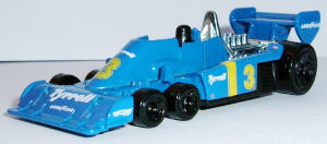 Hotwheels Tyrell P34in black. 1:60ish scale made in 2014, mint condition with blister pack | Hotwheels Tyrell P34in blue. 1:60ish scale made in 2010, mint condition with blister pack | Unknown Tyrell 007 Racing car in blue. 1:60ish scale made in the 70's, good condition - no box |